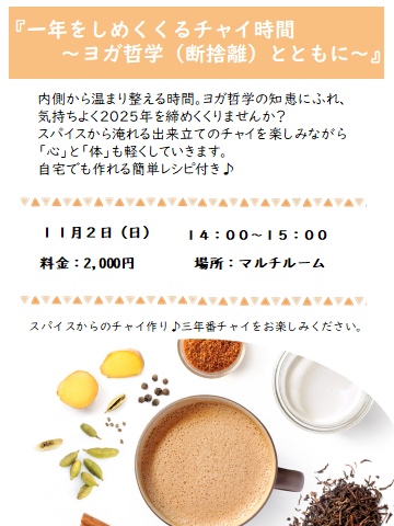 《一年をしめくくるチャイ時間~ヨガ哲学とともに~》