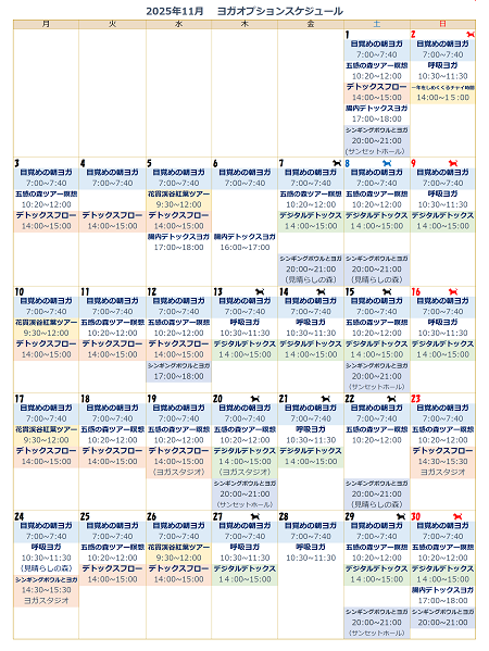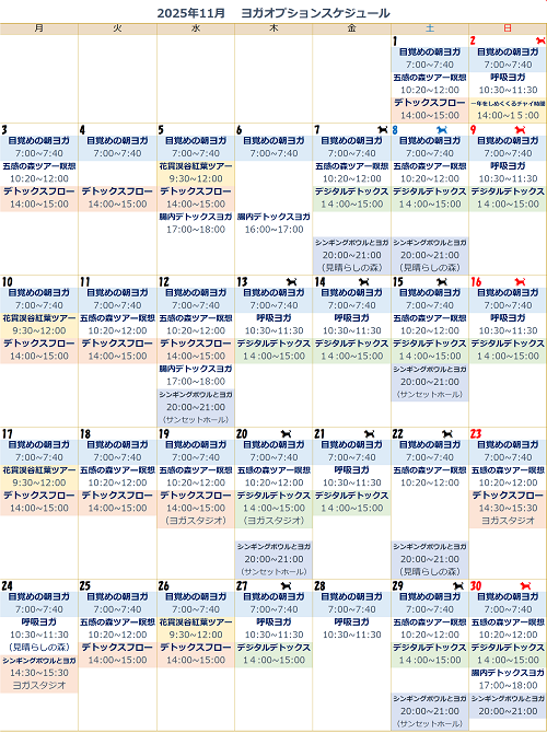 ※全ヨガプログラムは毎月不定期開催となります。予めご了承ください。