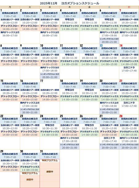 ※全ヨガプログラムは毎月不定期開催となります。予めご了承ください。