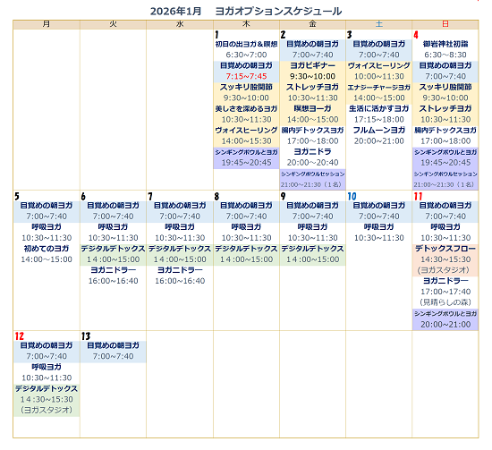 2026年1月 ヨガスケジュール